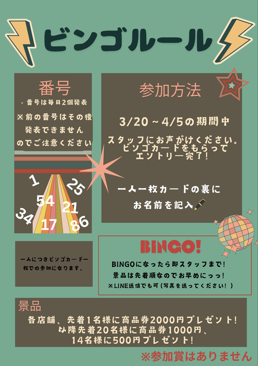 【4月1日から!】春のビンゴ大会スタート!カード絶賛配布中です✨